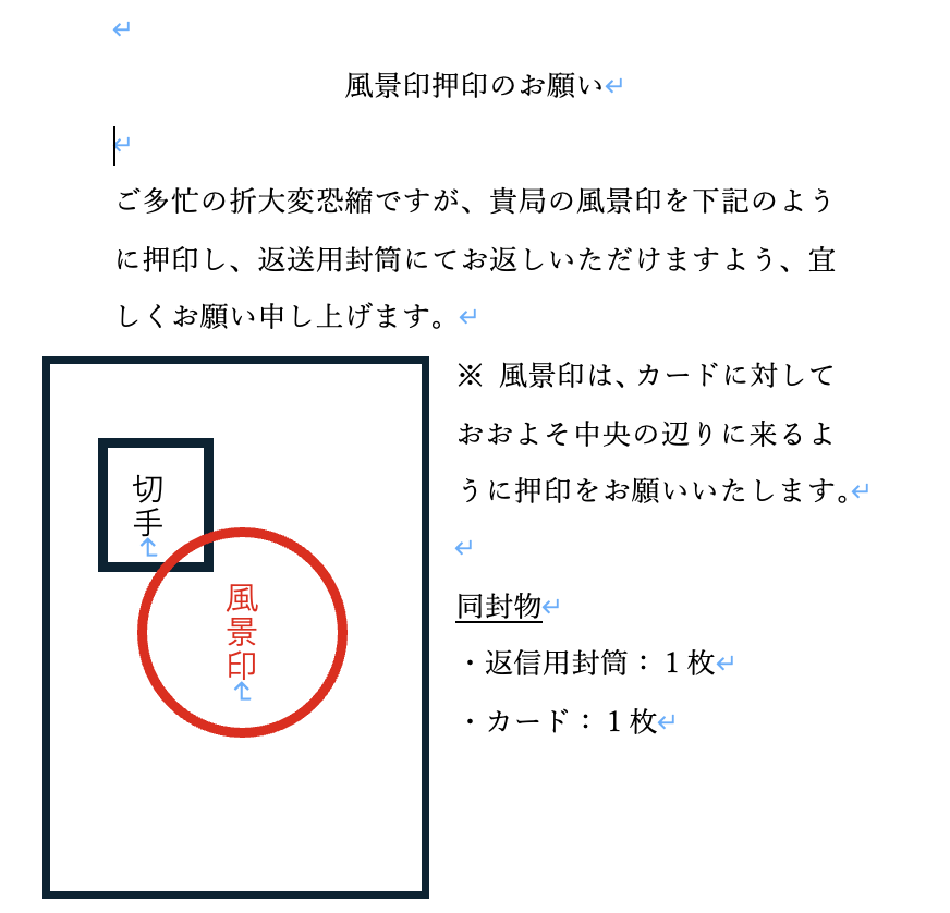 • 「風景印を押してください」と伝える手紙です