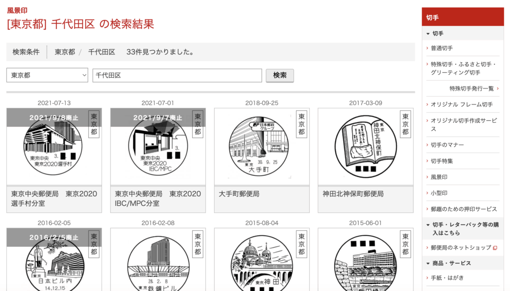単に廃止される場合もありますが、風景印の絵柄が更新される場合にも表示されますので、郵便局の名前を入れて再度検索してみましょう!